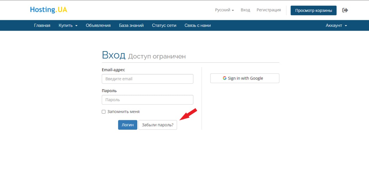 1 На странице «вход» нажмите «Забыли пароль?».