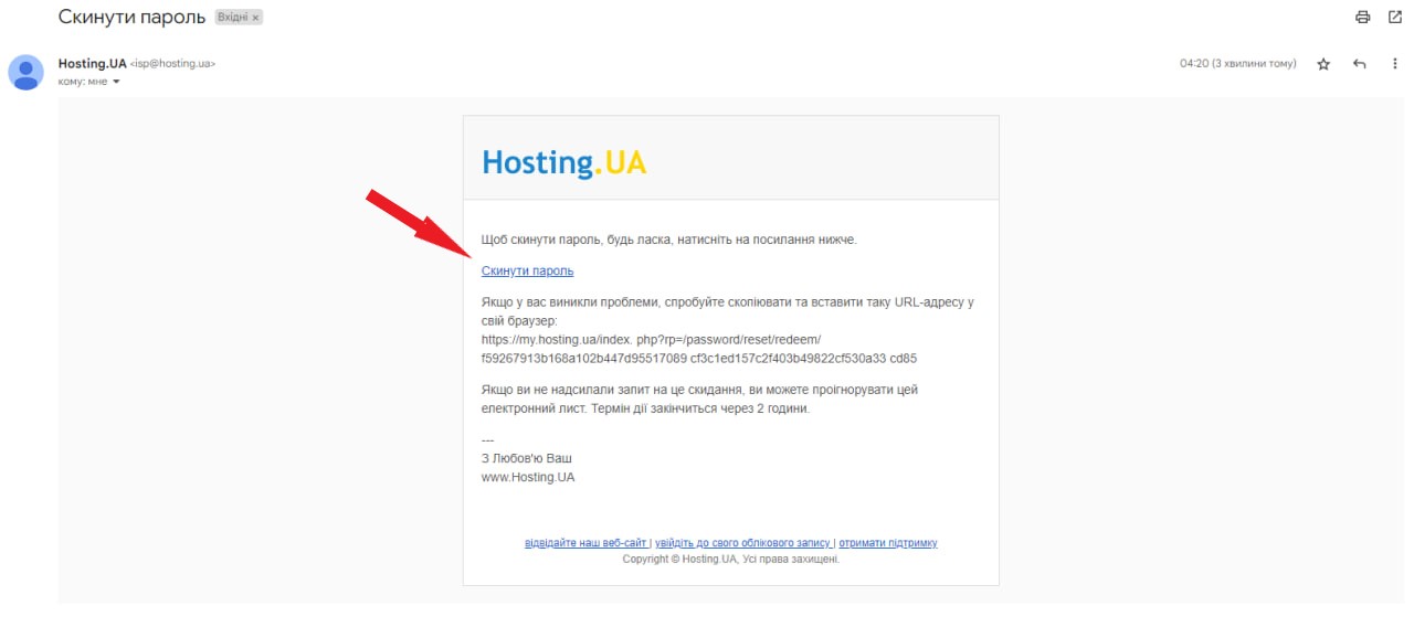 3 После этого на вашу почту придёт письмо, в котором вам надо перейти по ссылке для ввода нового пароля